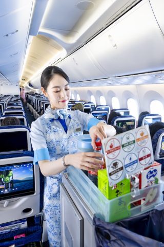 無料のドリンクは7種類から選べます。この写真はANAを大特集した「エアステージ5月号」の取材で撮影しました。国内線CAの乗務の流れがわかる内容になっていますので、ぜひこちらもご覧になってみてください。