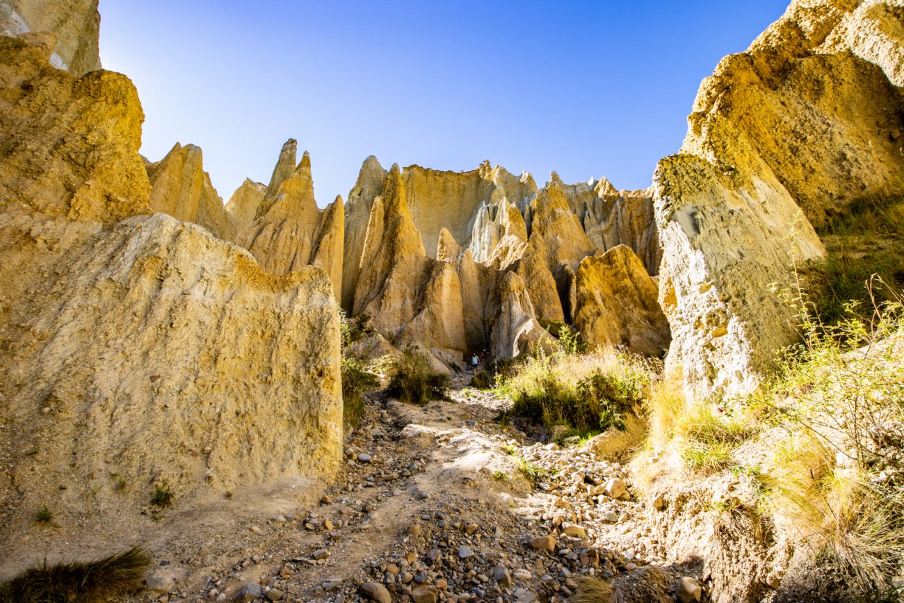 トレッキングというほどのコースではないのですが、ワナカとアオラキ/マウント・クック国立公園の中間にある町オマラマの奇岩群クレイ・クリフスも立ち寄りたいスポットのひとつ。空に向かって伸びるギザギザのピナクル(小岩峰)が集まり、異世界に迷い込んだような気分になれる場所です。