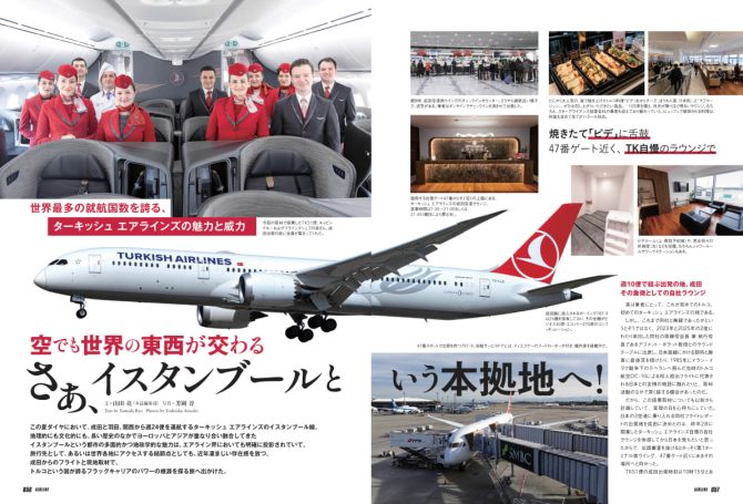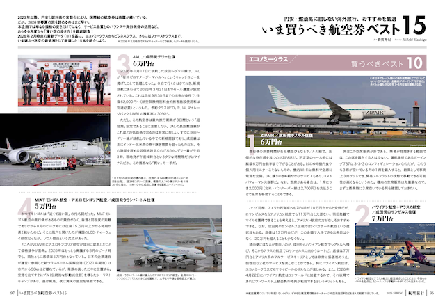 第1特集は「いつかは、ビジネスクラス」。そのほか「機内Wi-Fi」と「エコノミークラス」の特集もあり
