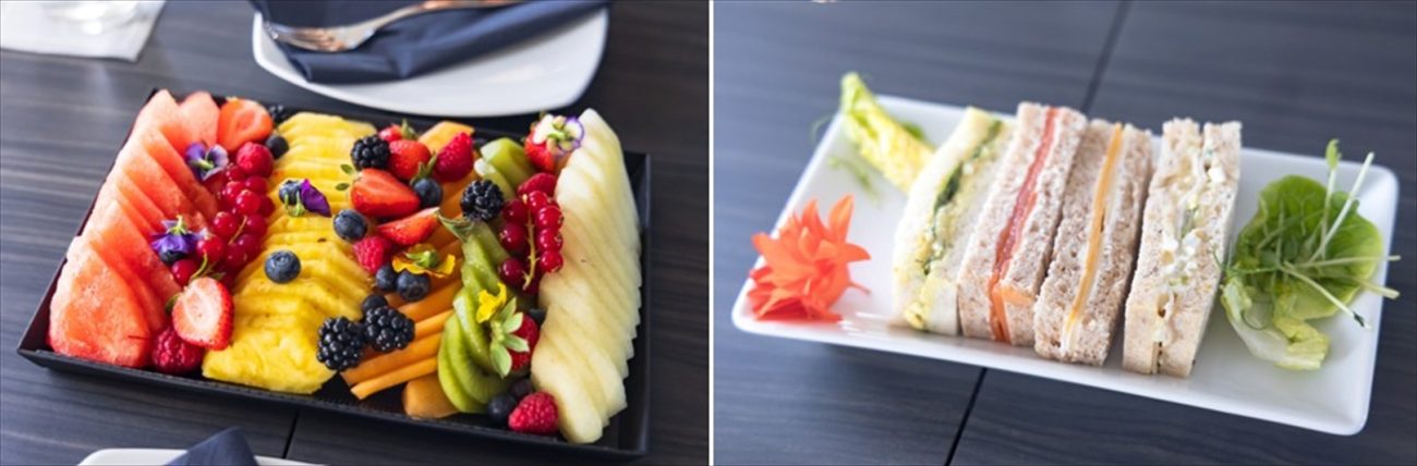パリからウィーンまでのフライトは約1時間半と、日本の国内線感覚の短さだ。プライベートジェットでは機内食メニューも自由に選択が可能で、この日オーダーされていたのはフルーツの盛り合わせ、サンドイッチ、スイーツであった。