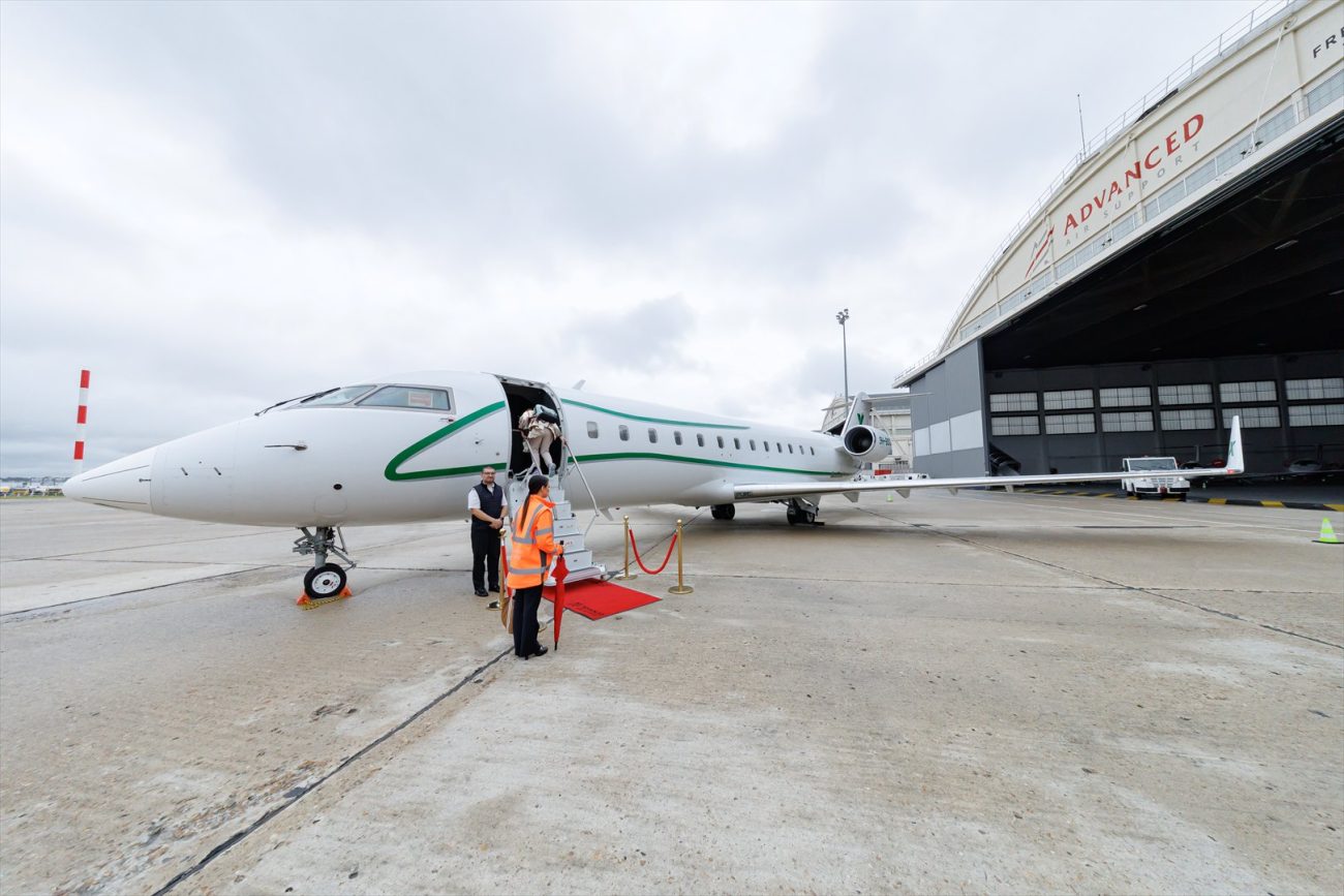 今回の搭乗機である登録記号9H-BOOは、2005年11月にCRJ200として製造された機体で、当時ノースウエスト航空の傘下であったメサバ航空向けにデリバリーされる予定であったが、ノースウエスト航空の消滅により引き渡されることなく、2007年にChallenger 850への改修が行なわれた。2007年12月からアラブ首長国連邦(UAE)を拠点とするExecuJet Middle Eastにおいて登録記号VP-BSDとして運用された後、2015年7月に現在のAirX Charterへ移籍している。
