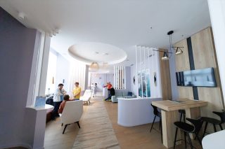 ラウンジも広々としておりコーヒーなどを味わいながらゆったりと過ごすことができる。タイミングにもよるのかもしれないが、基本的にフライトごとの専用ラウンジとなる。