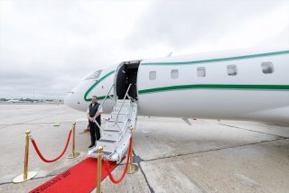 ル・ブルジェ空港(パリ)では保安検査を通り抜けてすぐの場所に機体が駐機しており、徒歩での搭乗が可能。