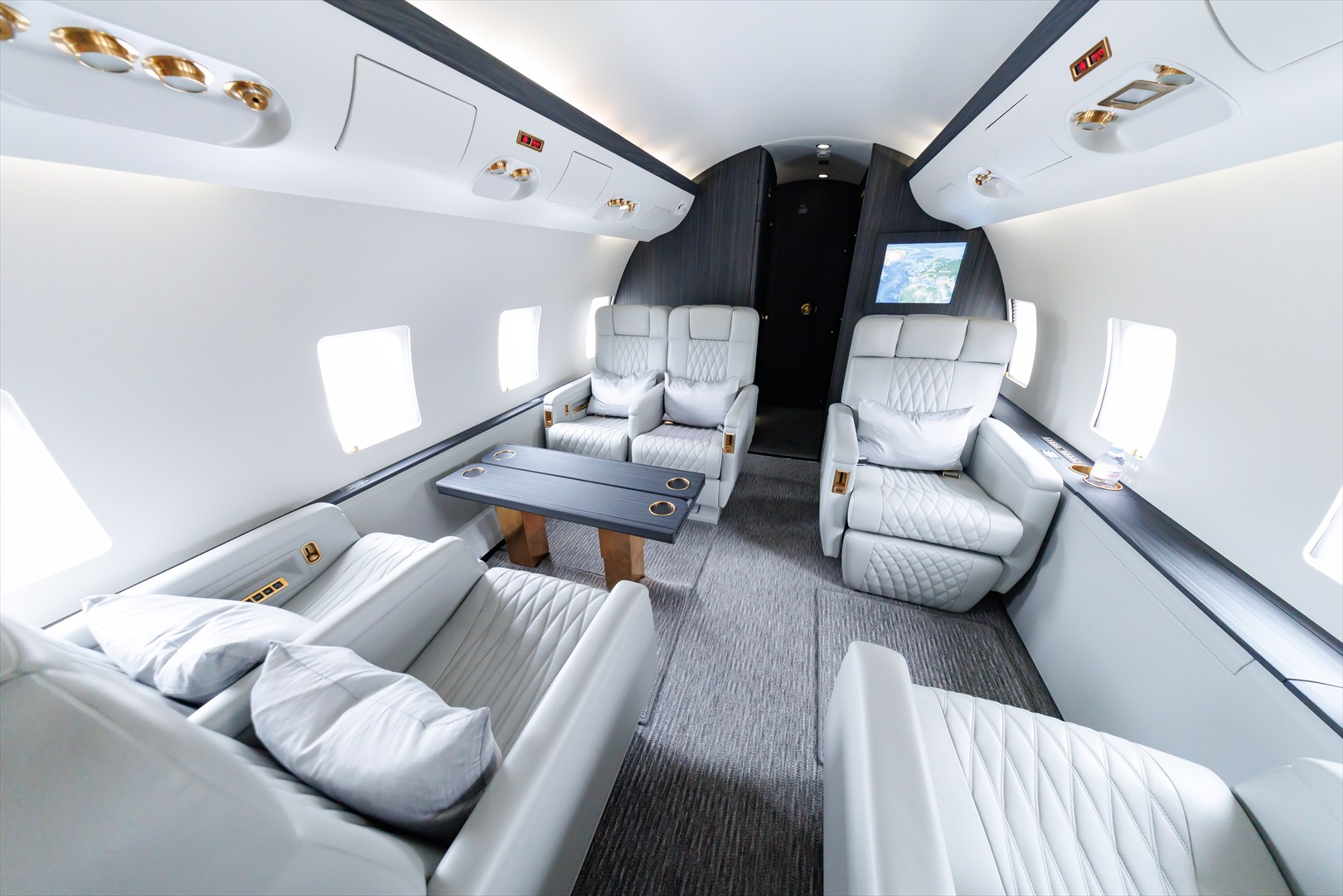 搭乗した9H-BOOの客室は、最大で15名が搭乗できる配置。独立したシートが12席と、3人掛けのソファが設置されている。