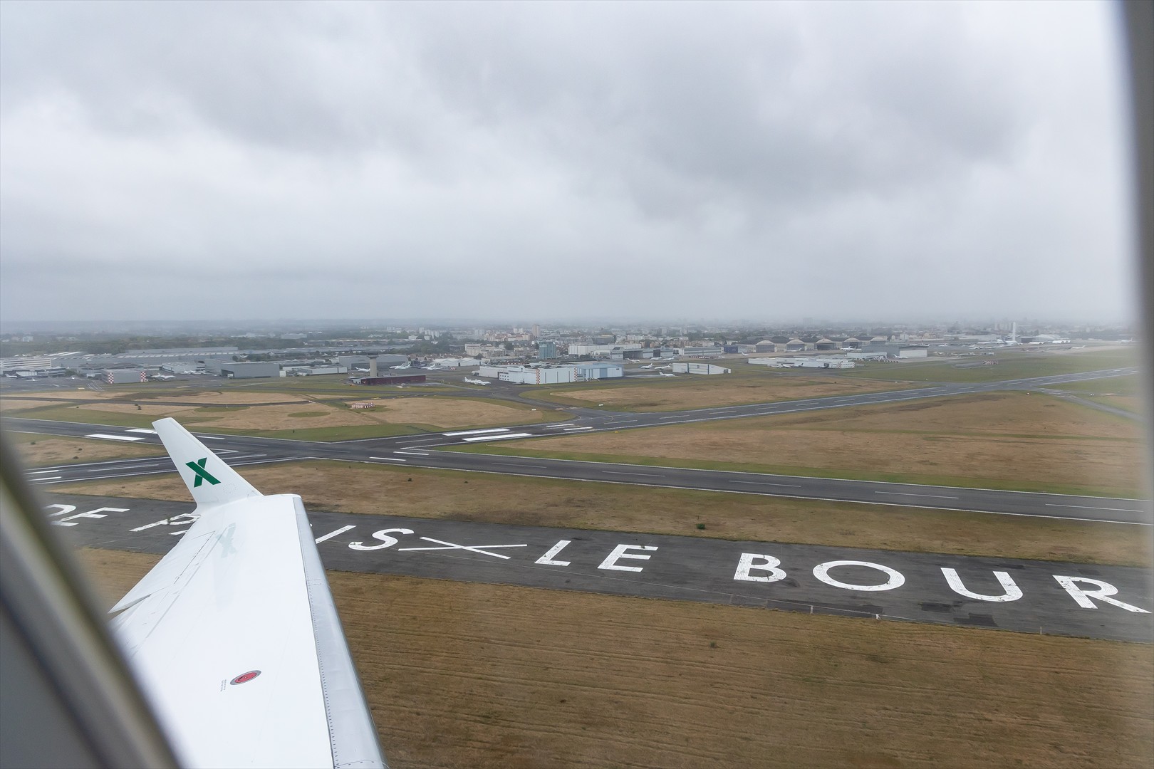 ル・ブルジェ空港RWY25より離陸。同空港では最も長い滑走路で3,000mを誇る。