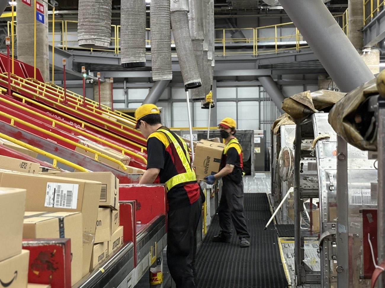 DHLジャパンの東京ゲートウェイでコンテナに搭載される国際航空貨物。法人顧客の間では小売り(越境EC)、製造、消費財、アパレルなど様々な業界で『GoGreen Plus』の利用が着実に広がっており、その商品化当初は、とりわけ環境意識の高い欧州企業に商品を納入するアパレル業界から利用が拡大していったという。