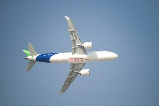 初参加となったC919。控えめながら注目を集めたデモフライト。