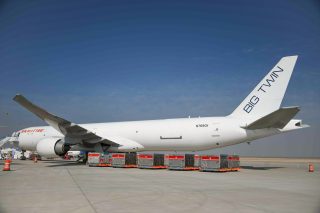 IAIはカリッタ塗装の777-300ERSF「Big Twin」を展示。同プログラムには日本のソフトバンクも出資している。