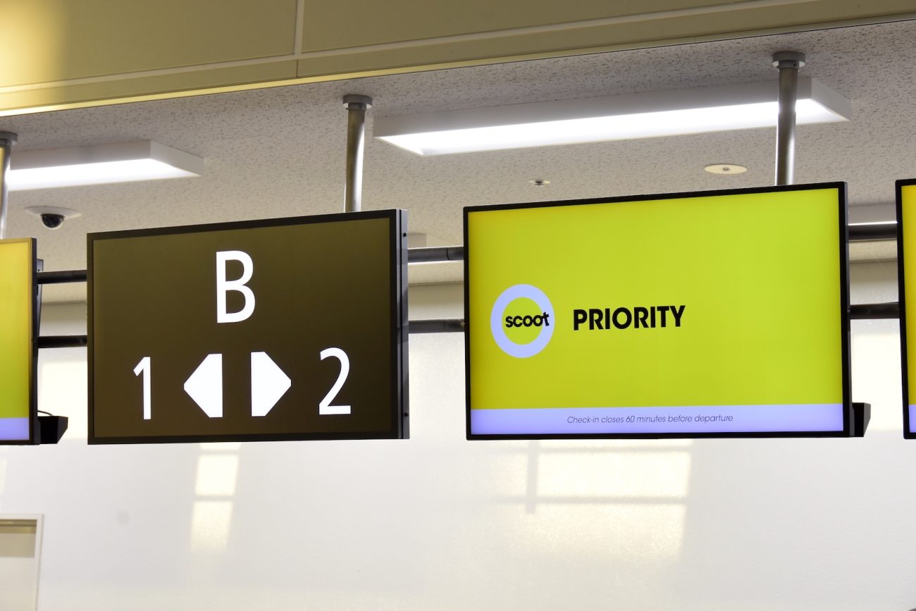 スクート向けチェックインカウンターBの締め切りは出発60分前で、午前8時20分となっている。就航時点で自動チェックイン機やオンラインチェックインには対応していなかった。就航初日にもかかわらず、てきぱきとした作業でスムーズな手続きがうれしい。日本人の乗客は少なく、ほぼインバウンドの旅行者が占めていた。