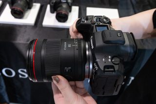 「EOS R5 Mark II」に取り付けた状態。ボディと合わせた重さは約1,382gとこの性能のレンズにしては軽く、かつボディとレンズの重さのバランスも良い。