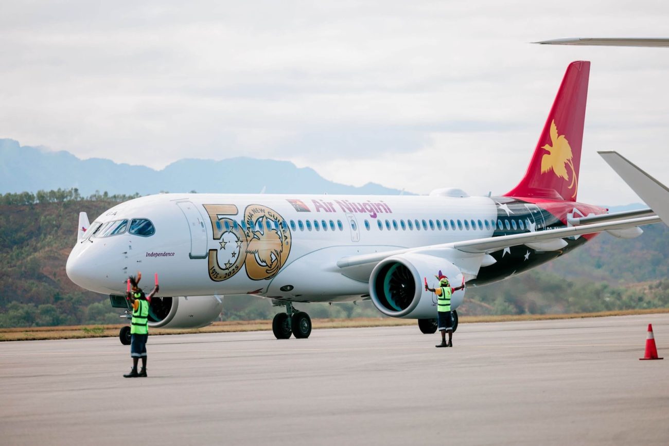 ニューギニア航空、エアバスA220-300の初号機を受領。パプアニューギニアの独立50周年記念塗装