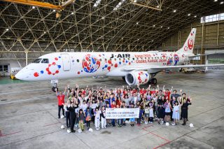 JALミャクミャクJETと記念撮影する参加者。2年間お疲れ様でした!