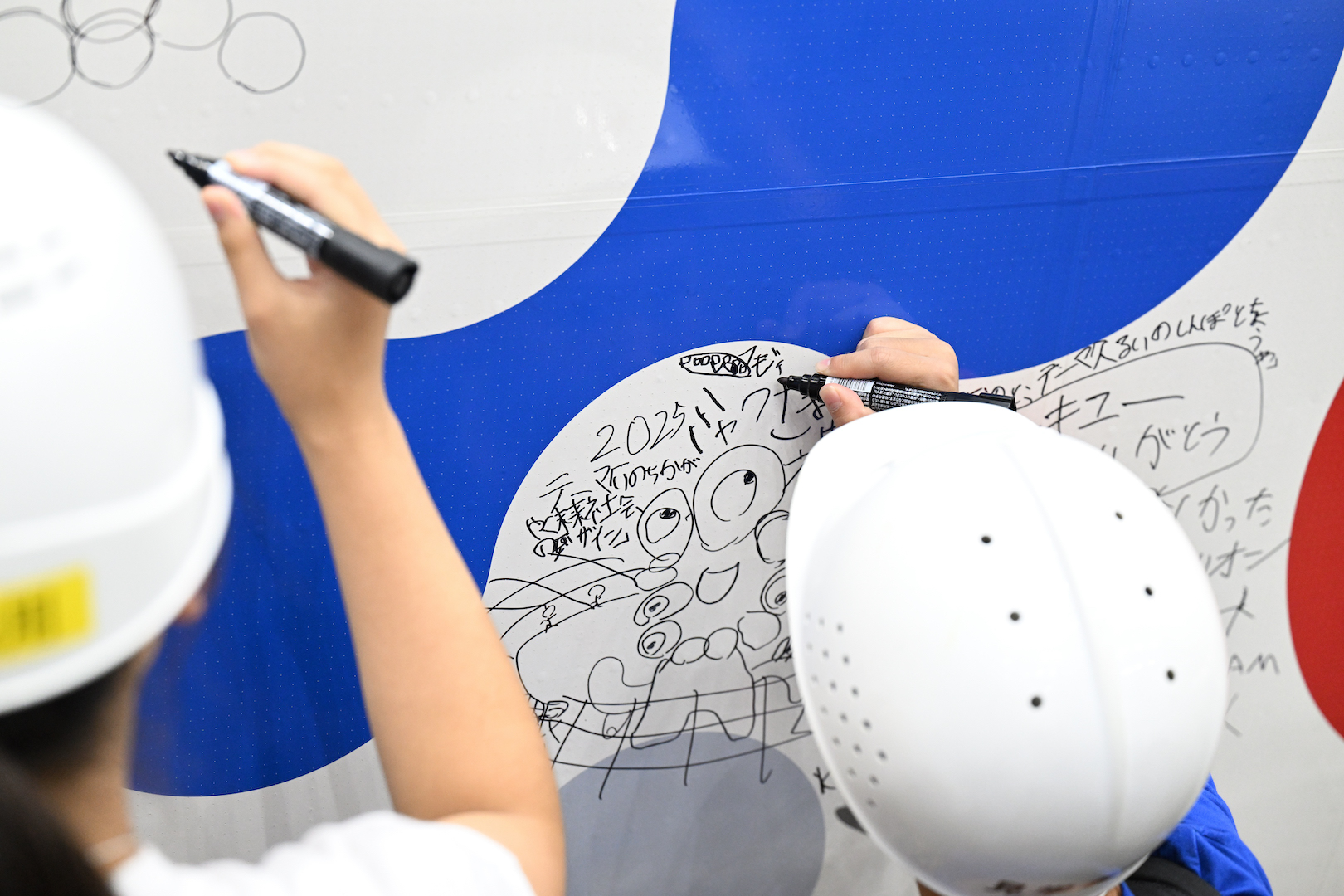 ミャクミャクJETにミャクミャクのイラストを上手に描く小学生。寄せ書きの域を超えた傑作!!