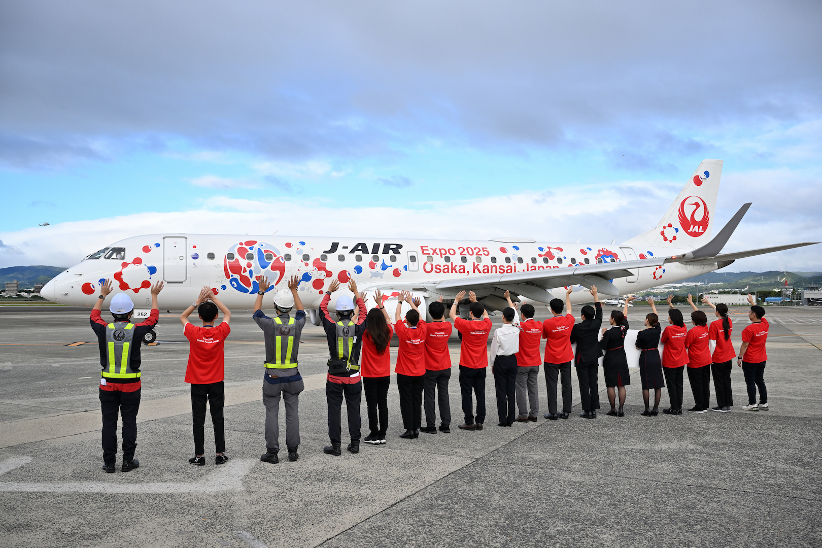 JL2233便、伊丹発山形行きを見送るJALグループスタッフ関係者。伊丹ではこれで見納めとなる。さようなら、ありがとうミャクミャクJET!!