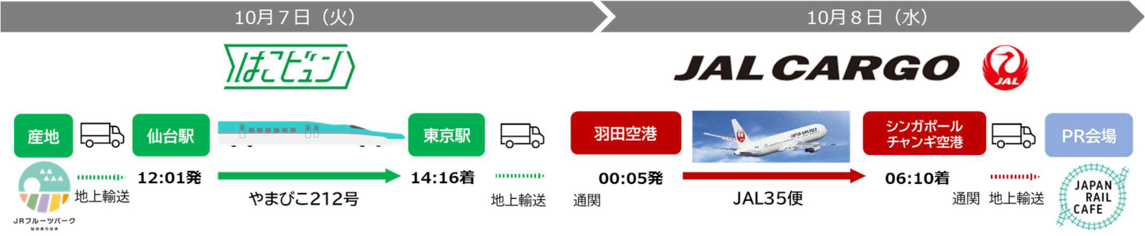 JR東日本とJAL、「はこビュン」と「JALCARGO」で仙台からシンガポールへ地産品を輸送。両グループ初の海外輸送トライアルを実施