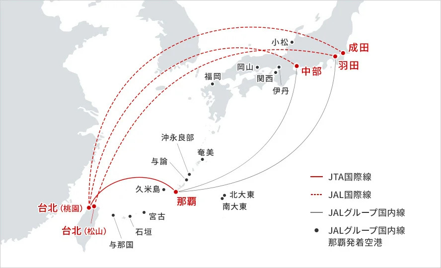 沖縄から約1時間半の距離に位置する台北は、伝統とモダンが融合した観光都市として人気が高い。今回の新路線開設により、台北と那覇周辺のアクセスや、那覇空港を玄関口としてJALグループの国内・国際ネットワークと組み合わせが大きく向上し、さらなる地域の活性化が期待される。