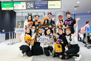 制服のコーディネートが自由なZIPAIRらしく(?)、仮装のバリエーションも多彩だ。
