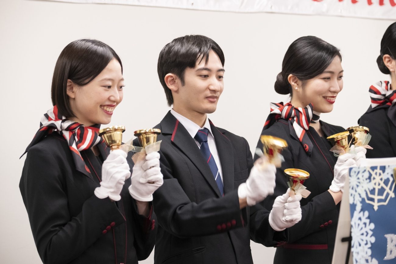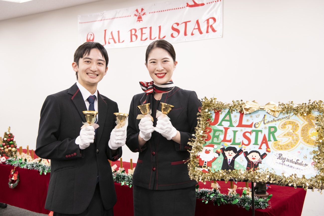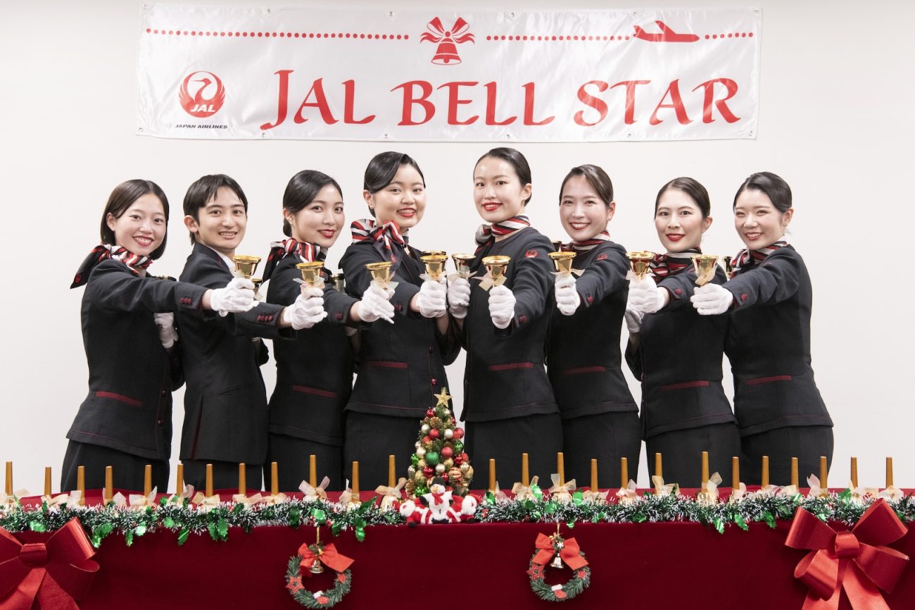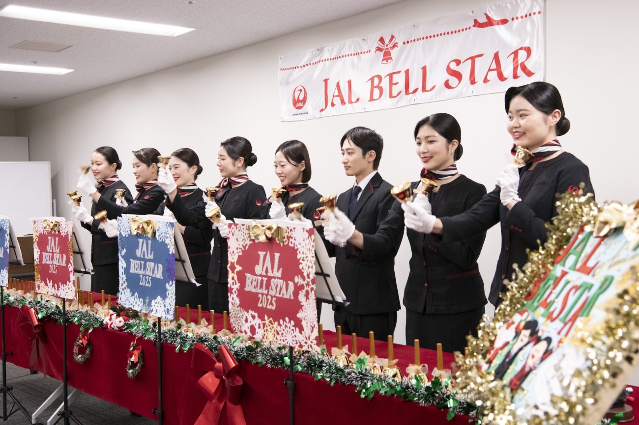 毎年クリスマスの時期に、JAL客室乗務員によるミュージックベルチーム「JALベルスター」が結成され、全国各地で美しい音色を届けている。2025年は結成30周年を迎え、史上初めて男性客室乗務員がメンバーに加わった。