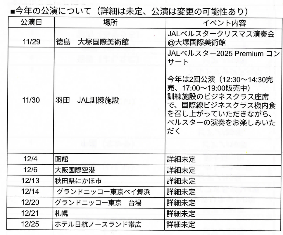 JALベルスター2025は、11月29日から12月25日まで、8都市9会場で公演予定だ。