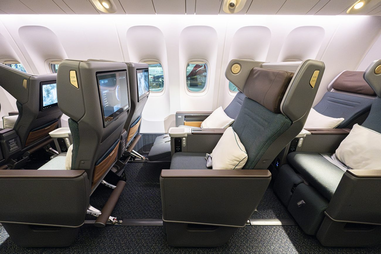 キャセイは、機内プロダクトの全面刷新を目的に、2024年からボーイング777-300ERの改修プログラムを開始。新キャビンを搭載した機材は、エコノミークラス268席を合わせた361席仕様で、座席配置パターンが4種類ある777-300のなかで「77J」のタイプが該当する。同社サイトの予約画面では、対象便に「Aria Suite」のマークも併記されている。