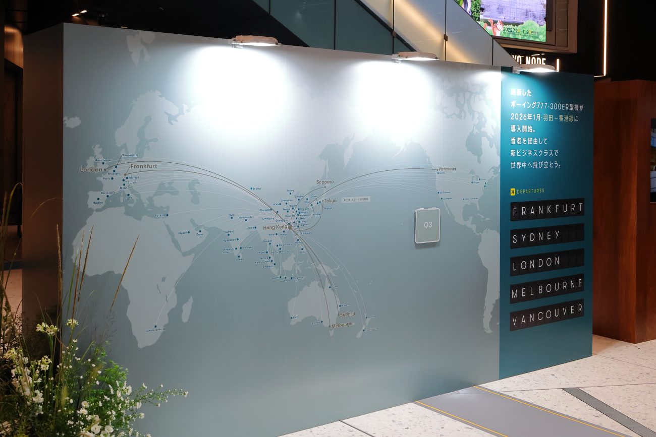 現在は、ロンドン、フランクフルト、シドニー、メルボルン、バンクーバーに加え、新千歳にも「77J」が就航。2026年1月からの定期運航を予定している羽田線は、1日2往復4便のうち、香港を8時55分に出発して13時45分に到着するCX548便と、その折り返しとなる16時羽田発、20時15分香港着のCX549便に投入される。