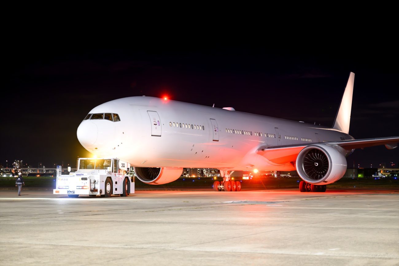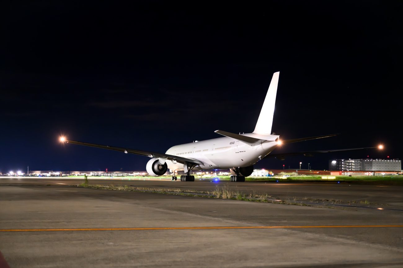 2009年8月の路線デビューから約19年にわたり、JALで登録記号JA735Jとして活躍し、今年9月に定期便ラストフライトを終えたボーイング777-300ERが、11月10日深夜に羽田を出発し、アメリカのアリゾナ州ツーソンへと旅立った。同機は2025年10月28日付でJALから登録抹消され、売却先へと籍を移しており、登録記号は「N3243Q」に変更済み。外観も全面白色の塗装へと変わっていた。