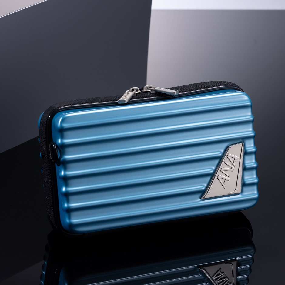 カラーは、マット仕上げのブルーとブラック、鏡面仕上げのゴールドの3色。ANA機の尾翼をイメージしたメタルプレートがアクセントとなり、高級感のある仕上がりだ。ショルダーベルトを使えばミニバッグとしても利用でき、用途に合わせて使い分けが可能。