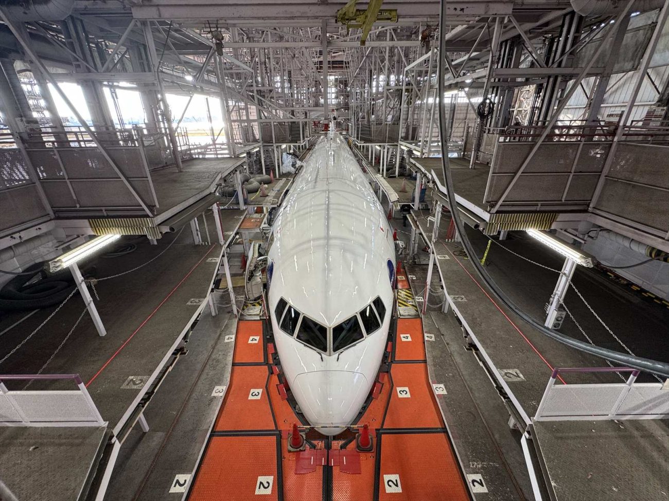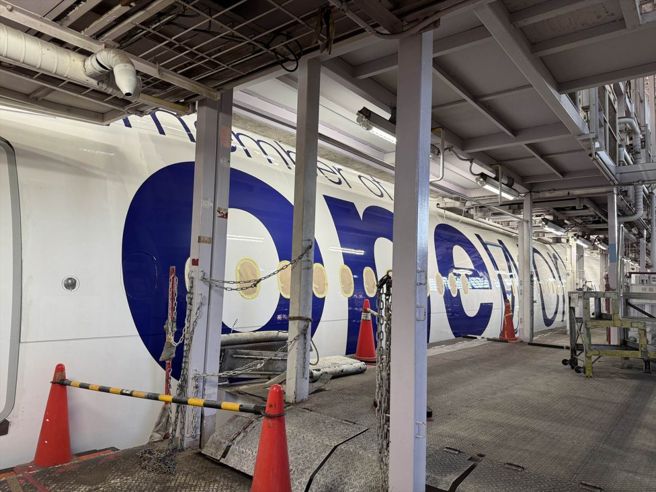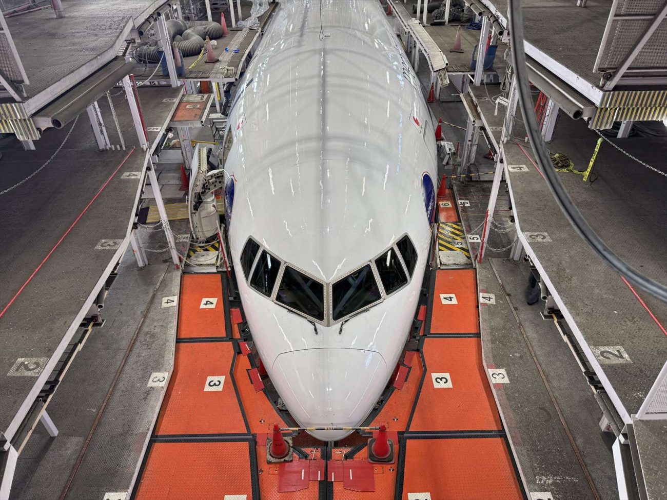 羽田M1ハンガーで進む退役整備。離日は来年2月を予定