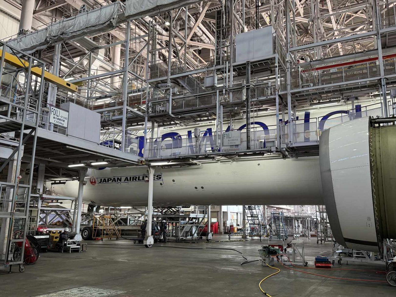 11月25日に羽田空港のJALメインテナンスセンター1(M1ハンガー)へ移動し、退役整備をスタート。整備期間は2026年1月下旬までを予定しており、その後、2026年2月ごろに売却先へ向けてフェリーされる見込みだ。整備期間中は、現役機として使用されてきた装備類の取り外しから機体の各種点検、書類作成まで、多岐にわたる作業が行なわれる。