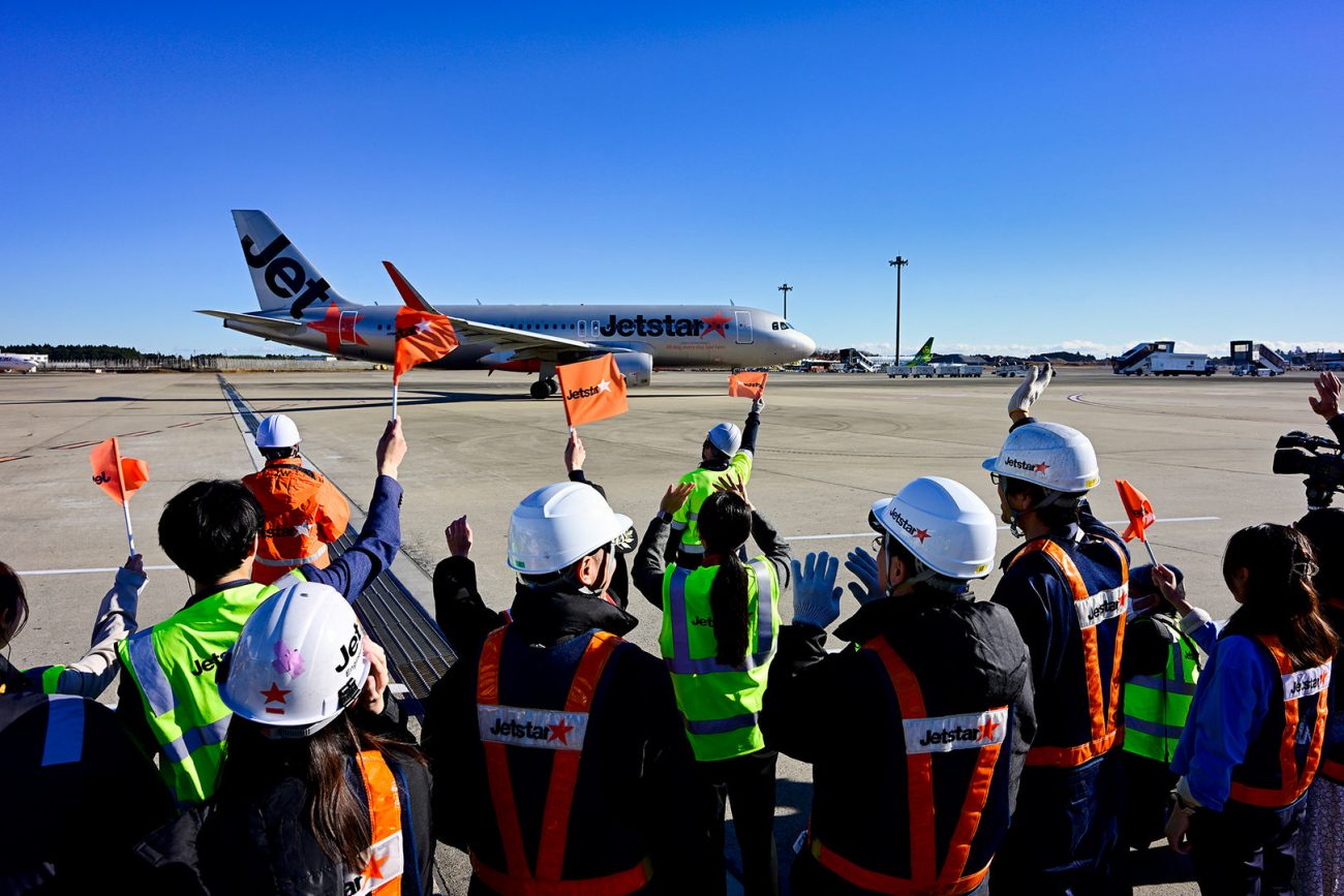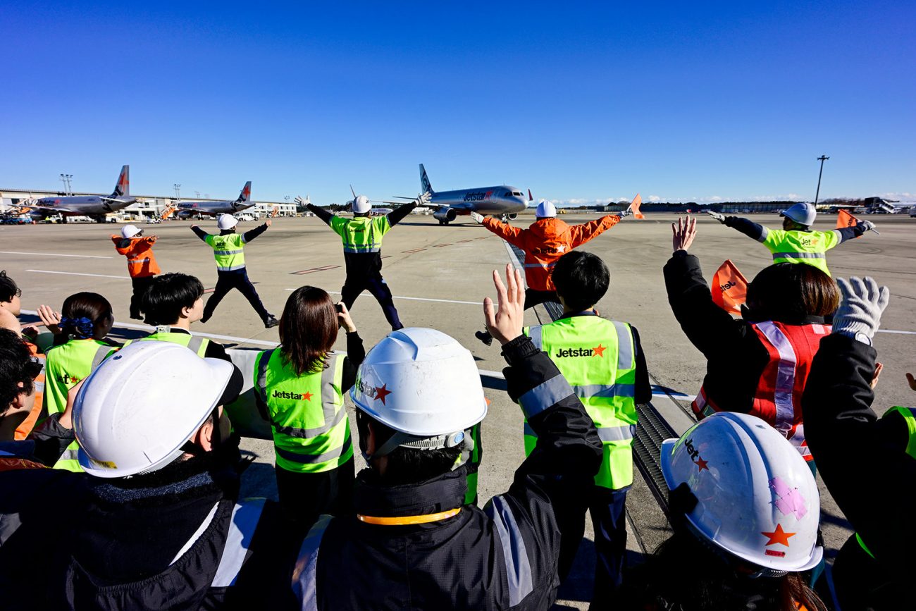 出発時にはジェットスター・ジャパンの見送りパフォーマンスである「スター・ジャンプ」も実施。大勢のスタッフも参加して大いに盛り上がった。ジェットスター・ジャパンの成田=高雄線の就航を機に、日本と台湾の交流がさらに活発化することは間違いなさそうだ。