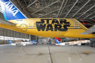 イベントではJA743A実機に加えて、すでに運航を終了した「R2-D2 ANA JET」、「BB-8 JET」のモデルプレーンが展示された。