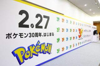 イベント会場入り口にはポケモン30周年記念ロゴがずらり。これまでに登場したポケモン全1025種類のロゴが制作されているという。主要駅などにあるデジタルサイネージでの広告も始まっており、今後さまざまな場所で目にするだろう。