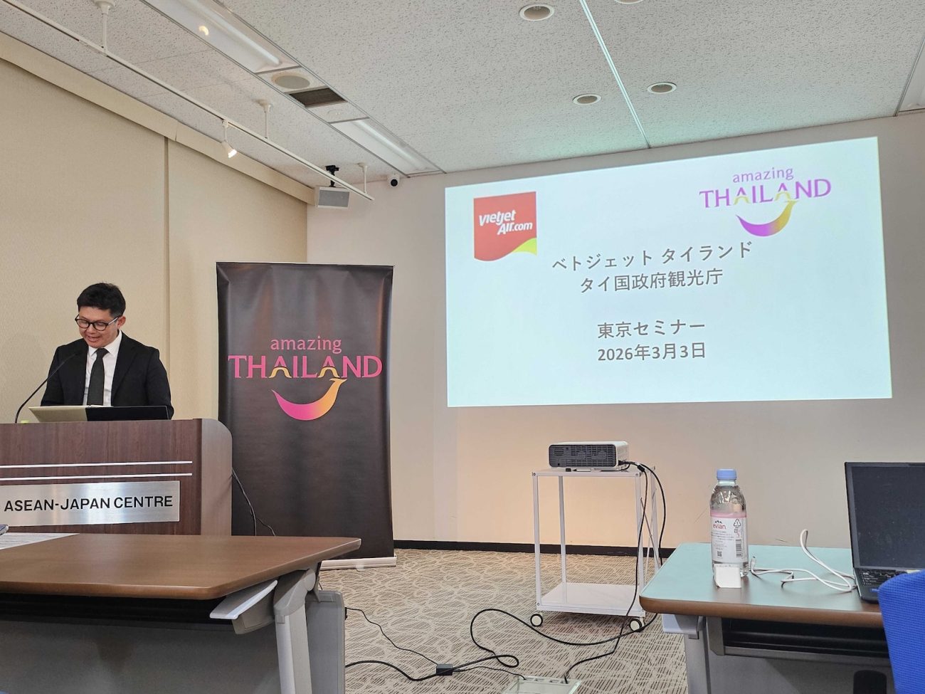 ベトジェット タイランドは、2月2日に成田=バンコク(スワンナプーム)線の運航を開始。これを機に、同社とタイ国政府観光庁は3月3日、東京都港区の国際機関 日本アセアンセンターにて、旅行代理店やメディアに向けてセミナーを開催した。タイの観光情報に加え、同社の魅力を旅行代理店に改めてプレゼン。さらにタイと日本をつなぐ架け橋として協力してほしいと呼びかけた。