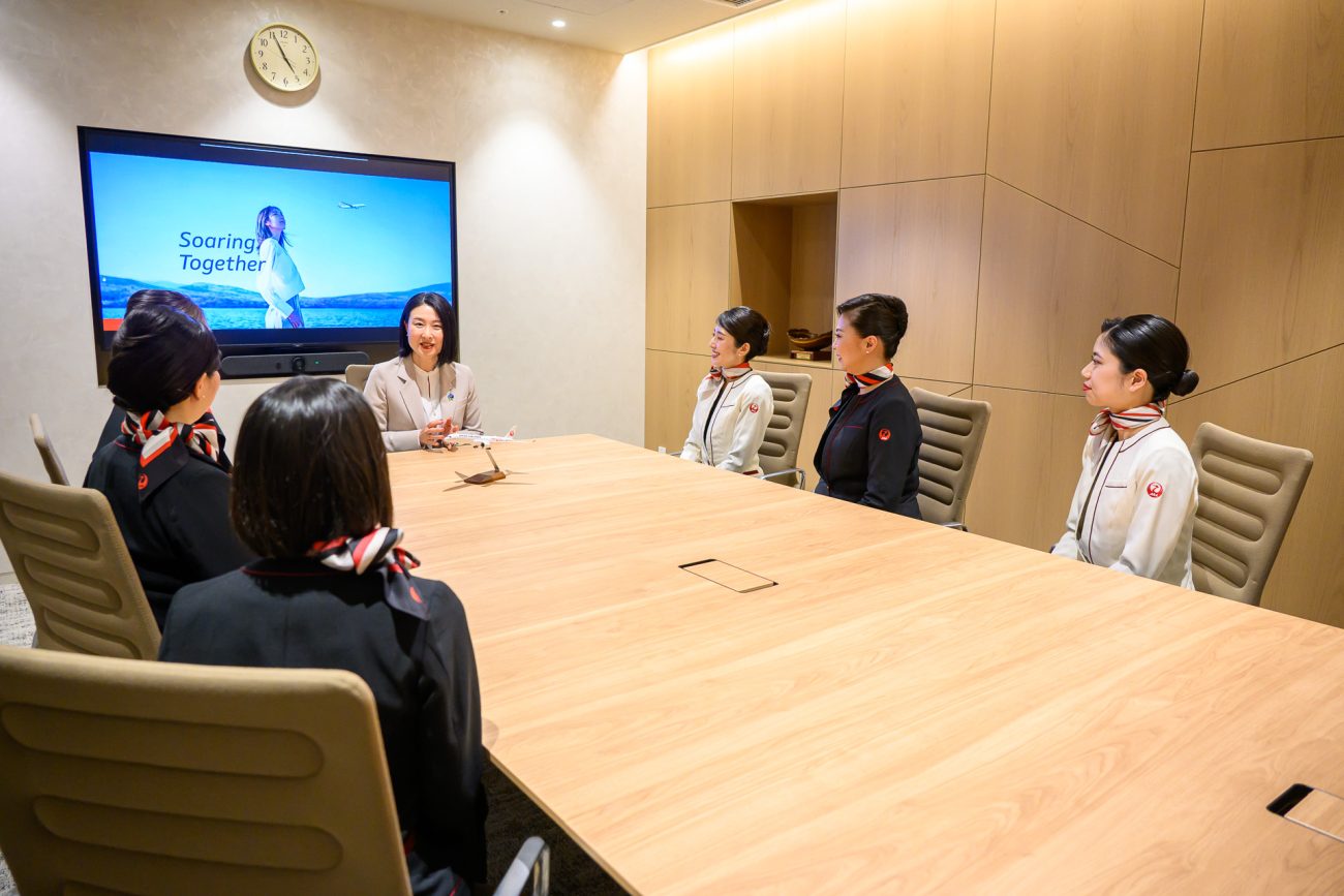 新任のJALふるさとアンバサダー6名が、西原口氏との着任オリエンテーションを実施。