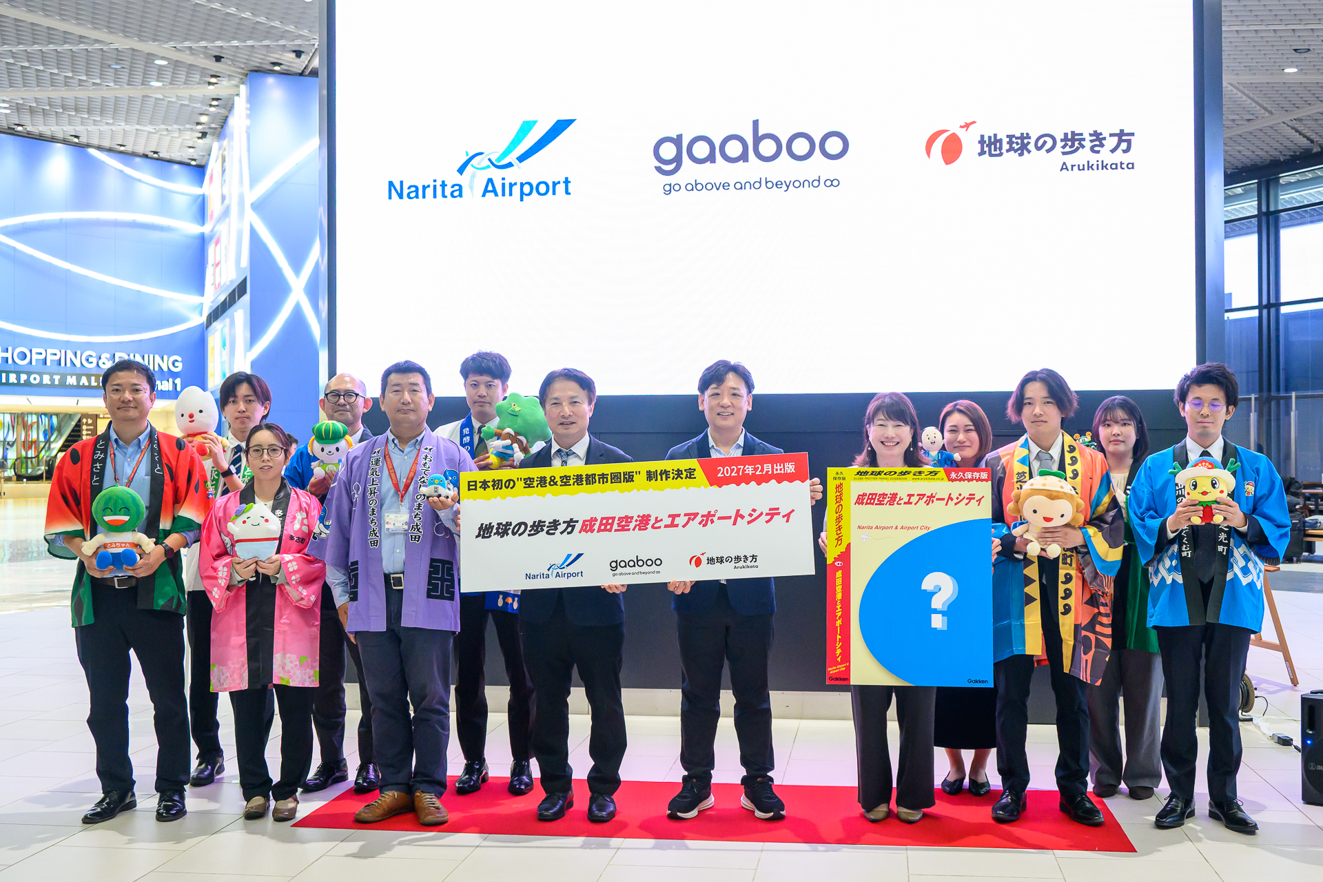 会見のフォトセッションでは、成田空港周辺のエアポートシティエリア自治体の代表も臨席。