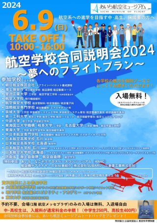 あいち航空ミュージアム、6月9日に「航空学校合同説明会 2024~夢へのフライトプラン~」を開催