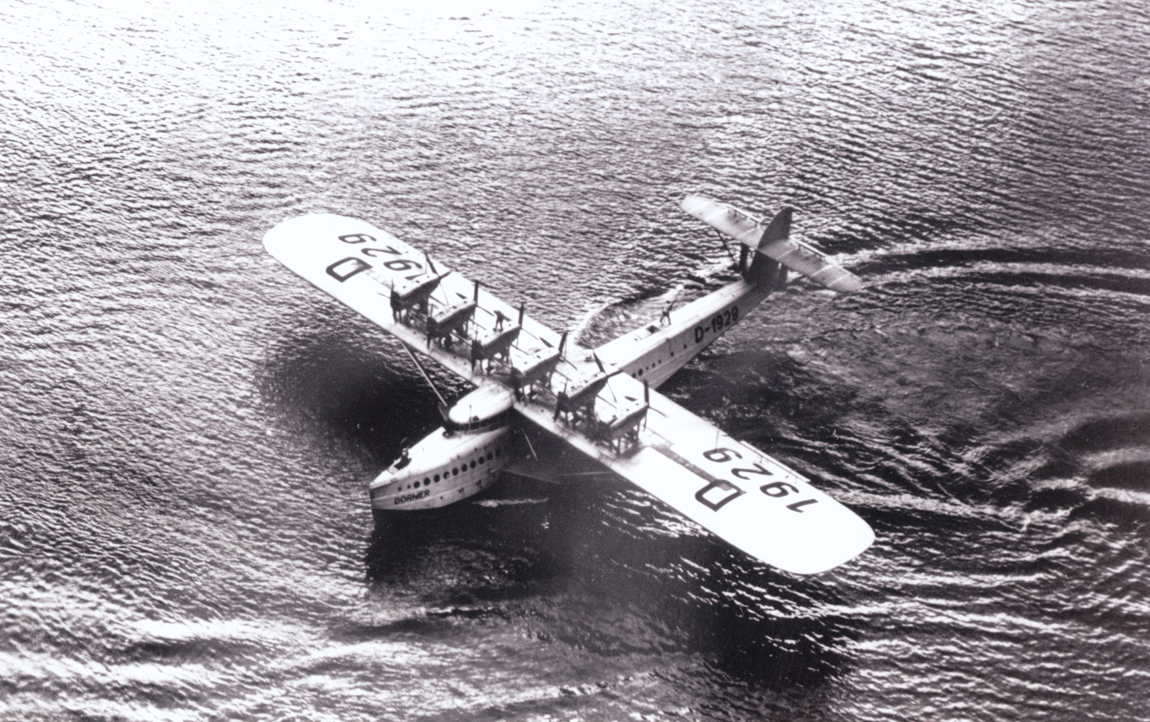 1929年に初飛行したDoXは、主翼の上に2つセットのエンジン12発を装備した当時世界最大の航空機だ。しかし初期型では1発が故障するだけで高度を維持できなかった。