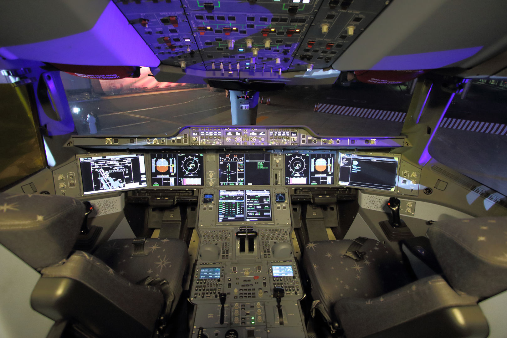 2名が乗務し、ディスプレイも共通規格で、故障した場合にはその内容を他のディスプレイに表示できるなど、コクピットは随所に多重化による高い冗長性を実現している。